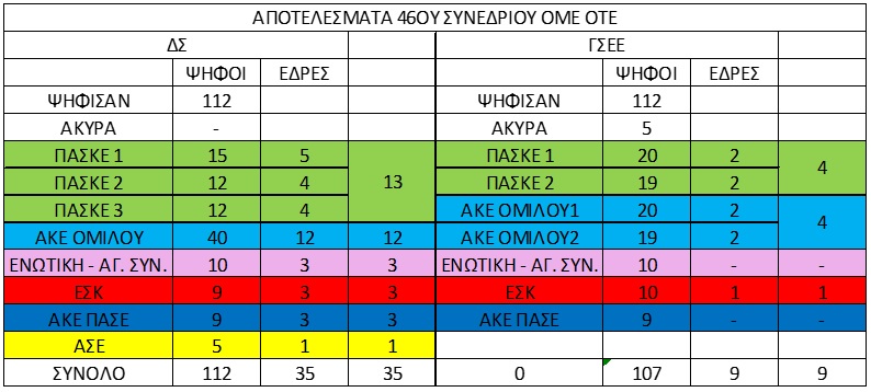διπλοψηφιών που κατέθεσε η ΕΣΚ – ΟΤΕ μειώθηκε το σώμα κατά έναν σύνεδρο ο οποίος